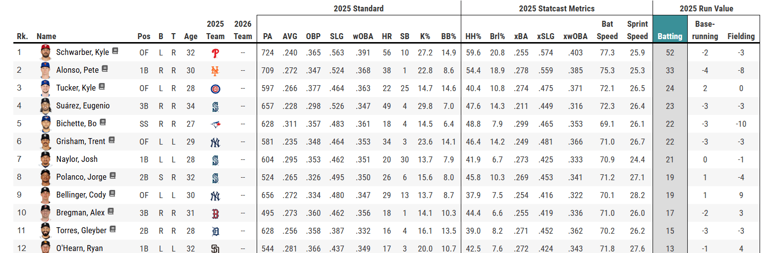- A new Hot Stove tracker was added to the site, collecting Statcast data for the current year's free agents.