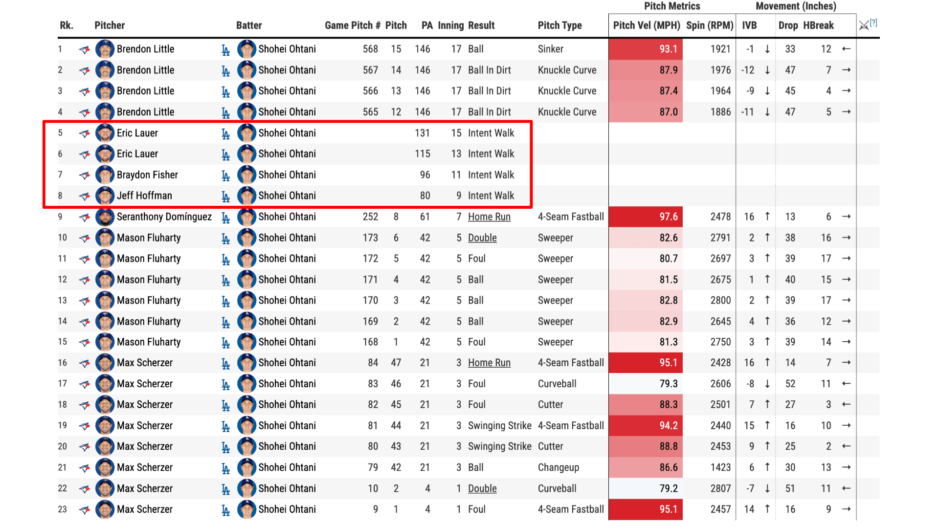 - Intentional walks and automatic pitches now show in the Baseball Savant Gamefeed.