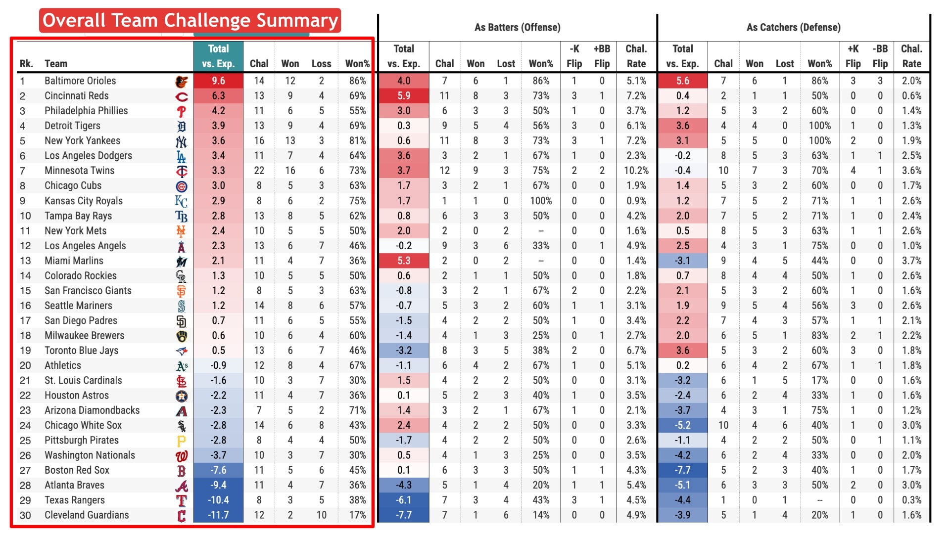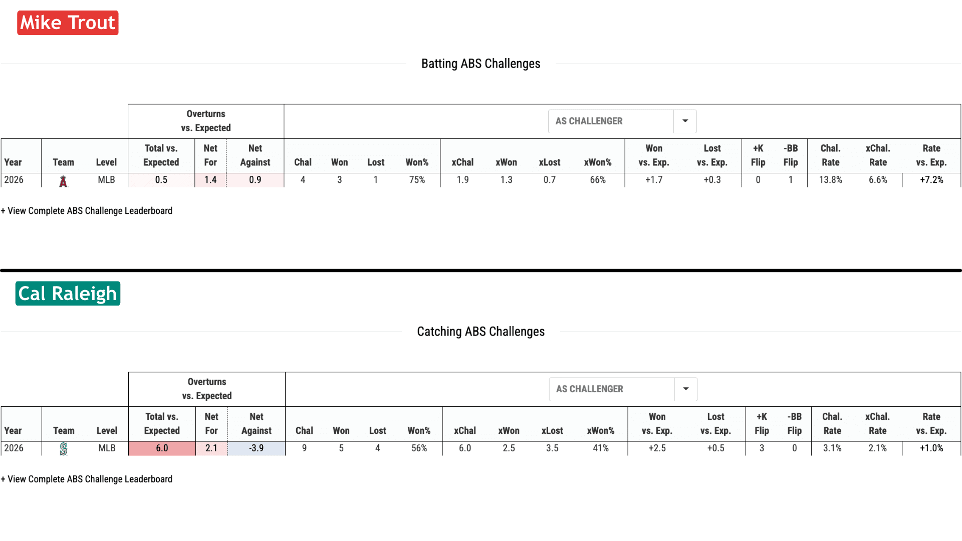 2) A detailed ABS leaderboard with Statcast challenge metrics here: https://baseballsavant.mlb.com/leaderboard/abs-challenges