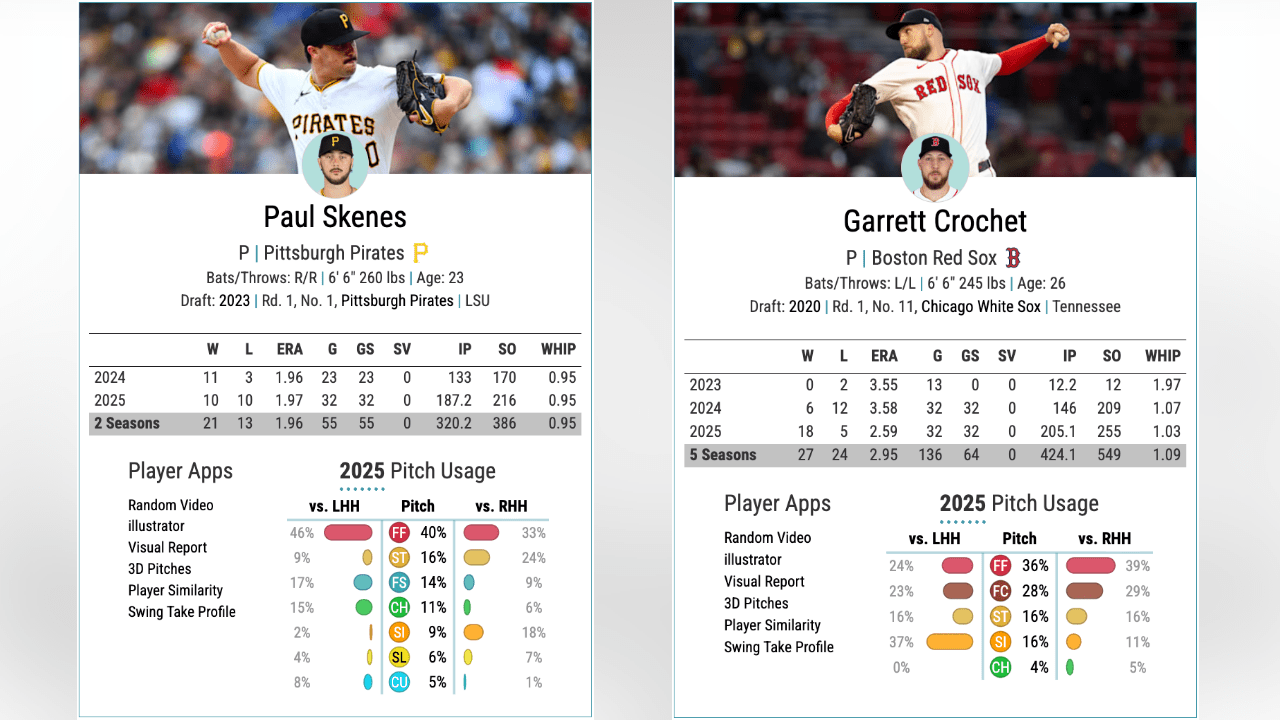 - Pitcher platoon usage visual (pitch types thrown vs. RHH/LHH) now available on Baseball Savant player pages.