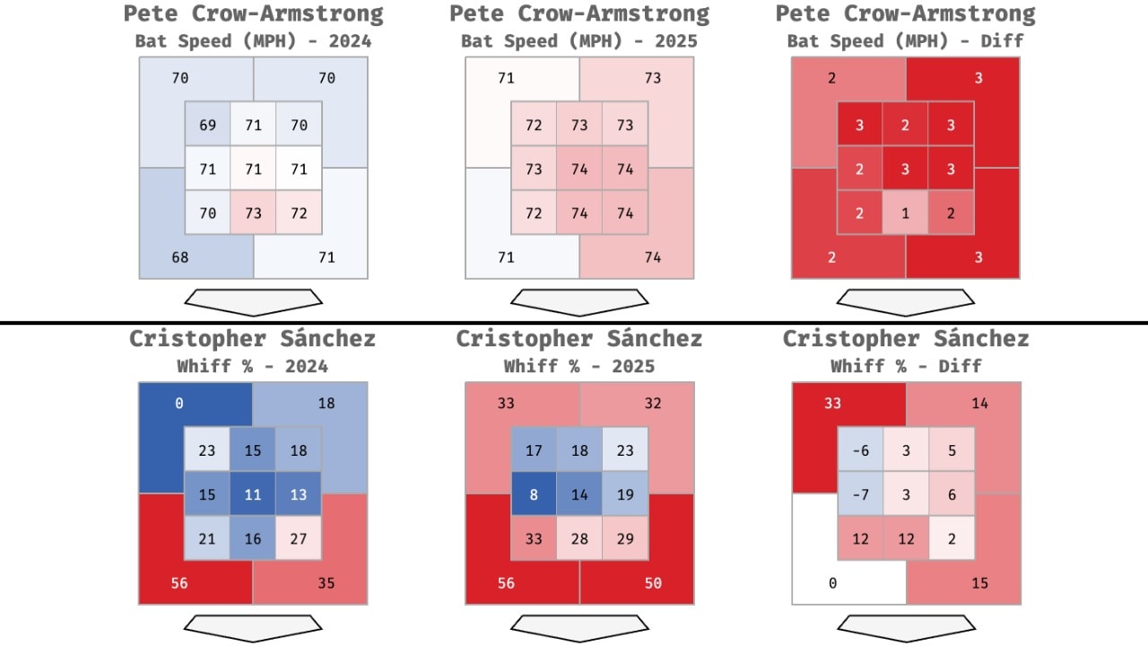 - Year-to-year zone chart comparisons for a wide variety of stats are now available for both batters and pitchers. Use the "Compare season" dropdown within the "Zones" tab of Statcast player pages. (Batter example | Pitcher example)